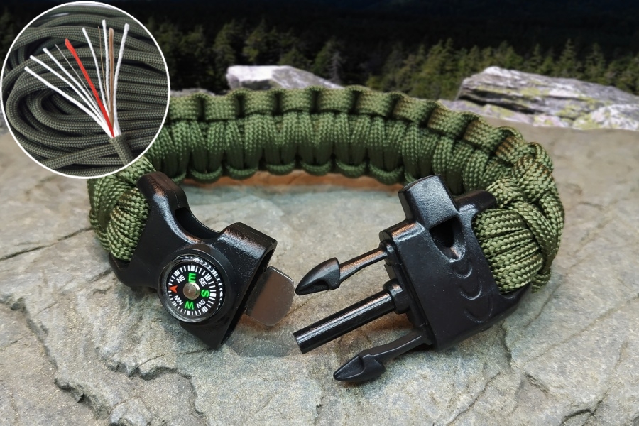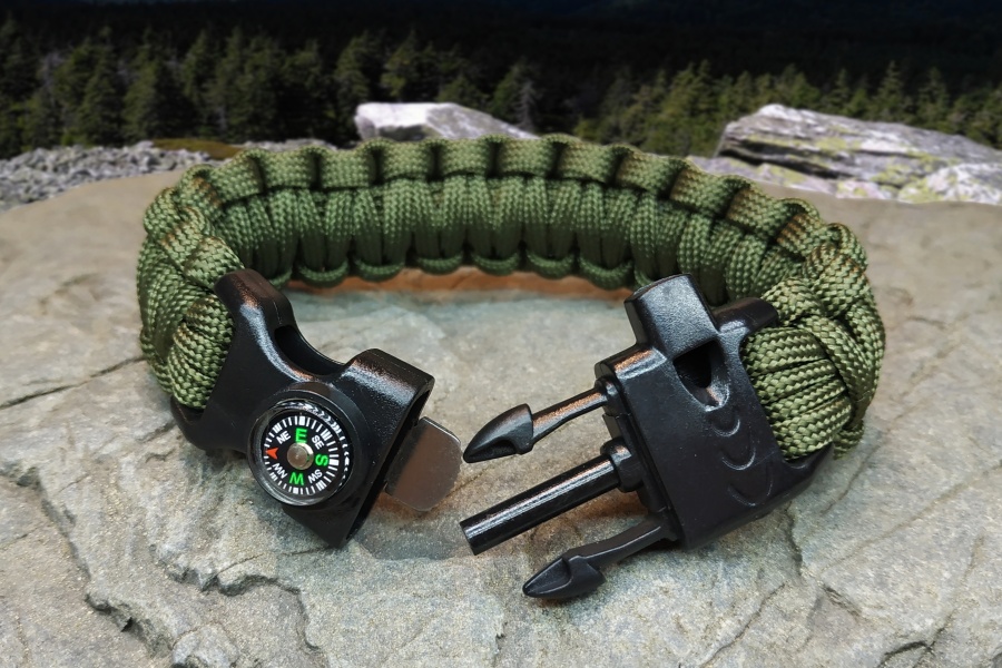 náramek 164 -na dotazstyl COBRAarmy zelený spona s kompasem, zapalovačem a píšťalkou multifunkční paracord